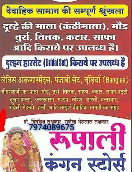 Jawahar Marg, Shamgarh, Madhya Pradesh 458883Artificial jewellery ,Kangan , cosmetic products