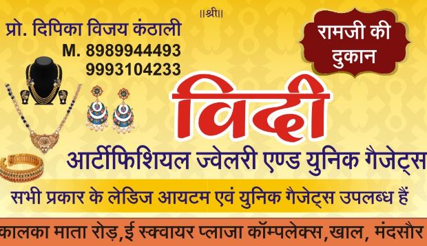Rd Number 1, near Sanjay enterprises, Kalakhet, Mandsaur, Madhya Pradesh 458001Artificial jewellery