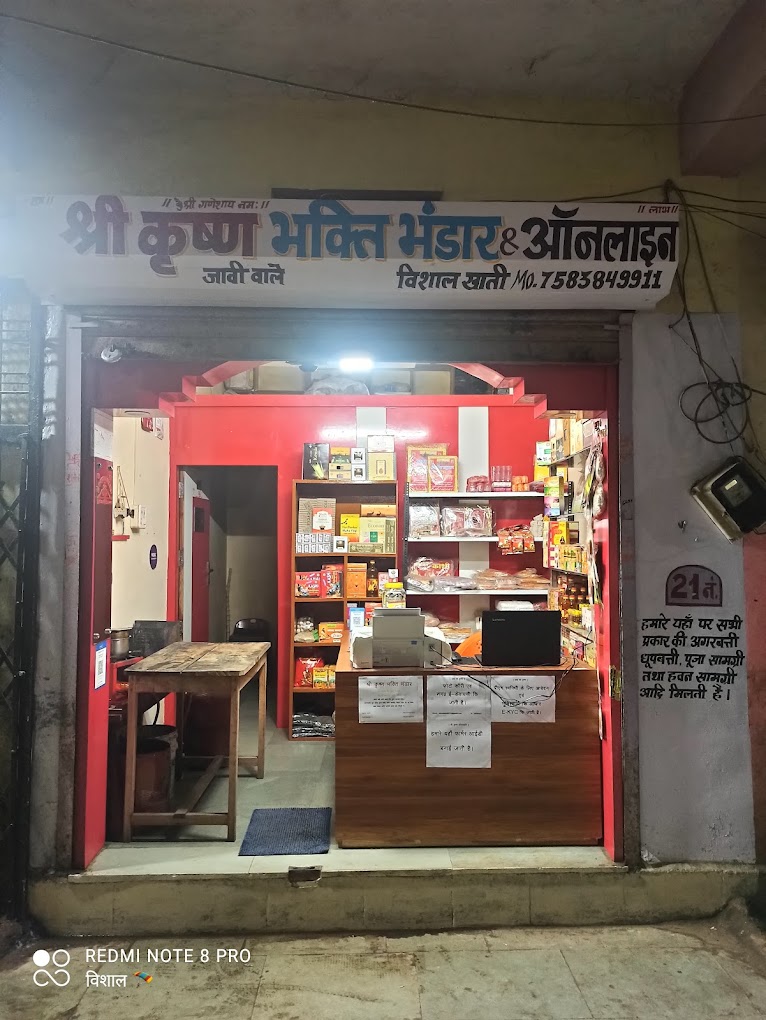 Nagar Parishad Complex Shamgarh"श्री कृष्ण भक्ति भंडार" पूजन सामग्री, हवन सामग्री, प्रिमियम अगरबत्ती, प्रिमियम धूप, फूलबत्ती, चंदन टिका, सभी तरह की कपूर, प्रिमियम इत्र, पूजा ऑयल, लड्डु गोपाल जी आदि सभी सामग्री हमारे यहाँ मिलती है।