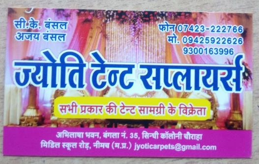 23, Parakh colony, Railway Station Rd, Police Colony, Mandsaur, Madhya Pradesh 458001tent