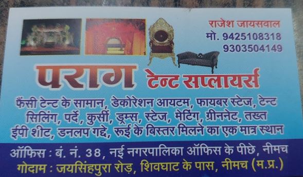 Raja Tent House, Masjid -E -Gose Aajam ke samne, Nayapura Road , R.K Hospital to next, Nayapura Rd, opp. to Masjid, Mandsaur Since 50, years, Madhya Pradesh 458001tentg