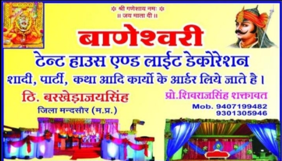 12, MP SH 31A, Ushaganj East, Rampura Naka, Manasa, Madhya Pradesh 458110tent house