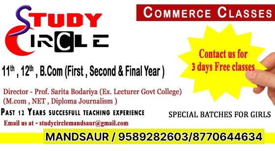 07, Bapu Nagar, Near Nanda hights, Sanjit Rd, Mandsaur, Madhya Pradesh 458001Commerce Classes